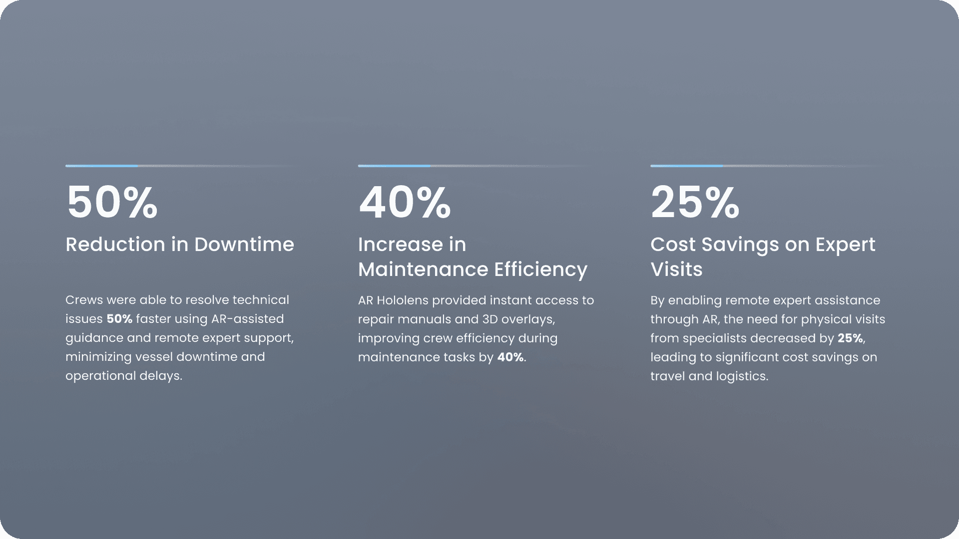 Through field observations on board vessels, spatial environment scans, and prototype testing with AR overlays, I uncovered key insights that shaped the solution
