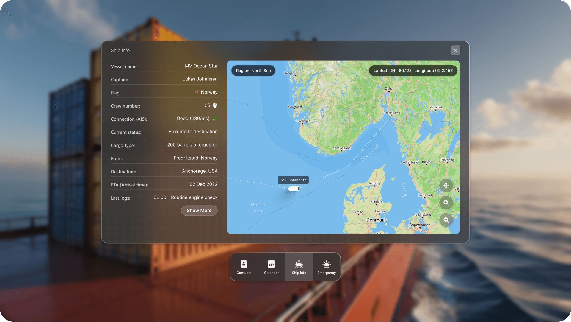 Designing an AR system for ships meant mapping 3D data in tight metallic spaces, keeping the UI readable in motion, and fitting seamlessly into daily crew workflows